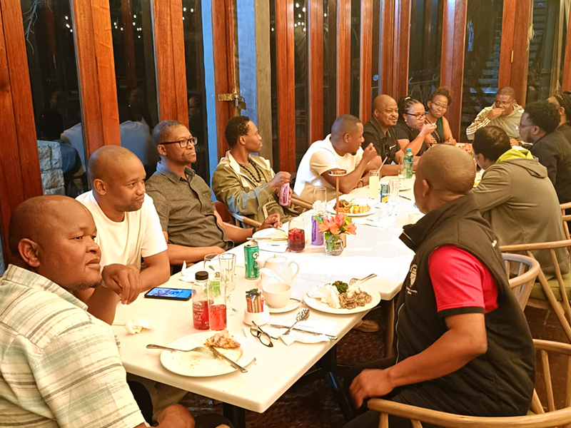 When the dumpies ran dry and the hunger kicked in, the aroma of delicious home-cooked food lured people from the tree and into the house. Sakhumzi found himself having to share his supper every time. Everyone put money together to buy drinks and the food was shared freely.